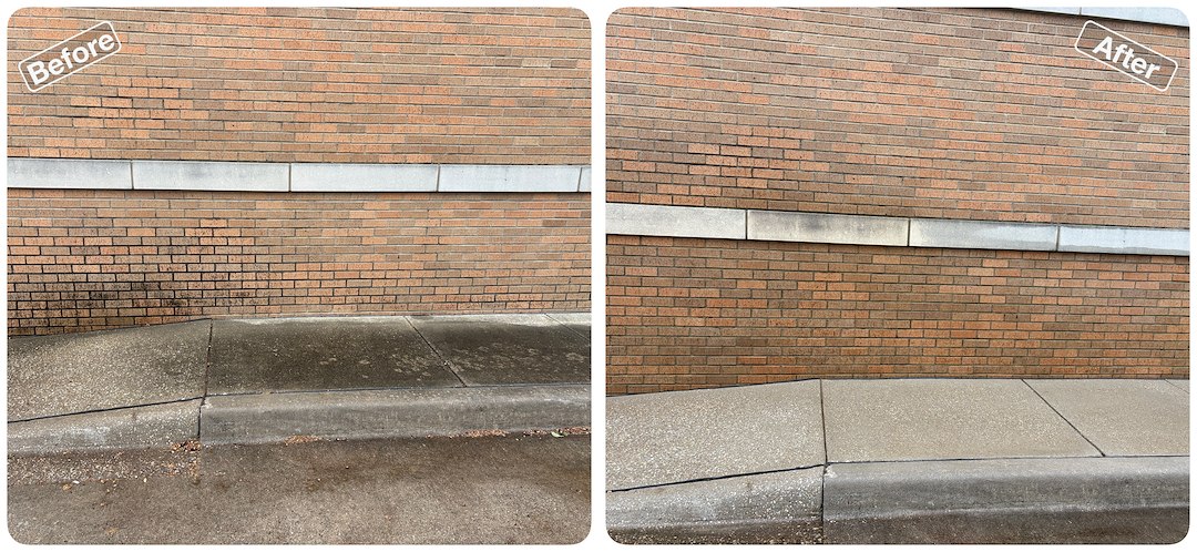If your business property has sidewalks, walls, or other concrete surfaces that have collected dirt, algae, or other organic stains over time, a targeted treatment and surface cleaning can be an effective way to restore appearance. This project demonstrates how surface cleaning brings back curb appeal and helps locations look professional and well maintained.